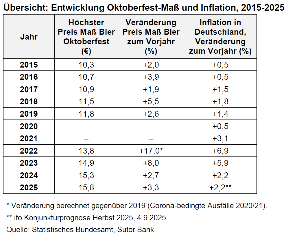 Das Oktoberfest 2025 zeigt: Während die amtliche Inflation zuletzt wieder auf moderate Werte um 2 Prozent zurückgegangen ist, fühlt sich die Teuerung im Bierzelt ganz anders an. „Beides stimmt: Die Maß Bier ist überdurchschnittlich teuer geworden – aber sie ist nicht repräsentativ für den gesamten Warenkorb. Inflation ist ein vielschichtiges Phänomen, und wer sie verstehen will, muss zwischen gefühlter und tatsächlicher Inflation unterscheiden. Ganz sicher ist jedenfalls: Auch ein Preis von eines Tages 20 Euro für eine Maß Bier wird die Menschen nicht vom Bierzeltbesuch abhalten. Schließlich ist die Wiesn-Maß um eine besondere zusätzliche Komponente aufgeladen: den Erlebnisfaktor. Angesichts des großen Spektakels um einen herum dürften Schluck für Schluck letztlich auch die Preissorgen hinuntergespült werden“, fasst Schippmann zusammen.